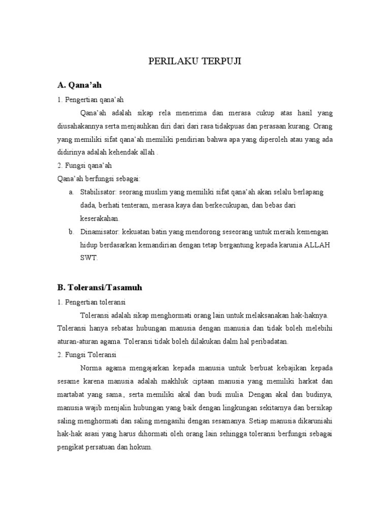 dengan demikian, dapat diharapkan anggota dpr sebagai wakil rakyat yang dapat menyalurkan aspirasi rakyat sebagai masukan (input) kepada pemerintah (eksekutif) yang menentukan kebijaksanaan umum berupa keputusan politik. Qona'ah artinya rela menerima dan merasa cukup dengan apa yang dimiliki dan menjauhkan diri dari sifat tidak puas dan merasa kurang. Menurut istilah, qona'ah adalah sikap menerima apa yang telah diberikan oleh allah kepadanya atau berfikir positif terhadap pemberian allah kepadanya. qana'ah berfungsi sebagai stabilisator dan dinamisator hidup seorang muslim. Banyak sekali sifat terpuji yang harus dimiliki seorang muslim diantaranya adalah qanaah dan tasamuh (toleransi).